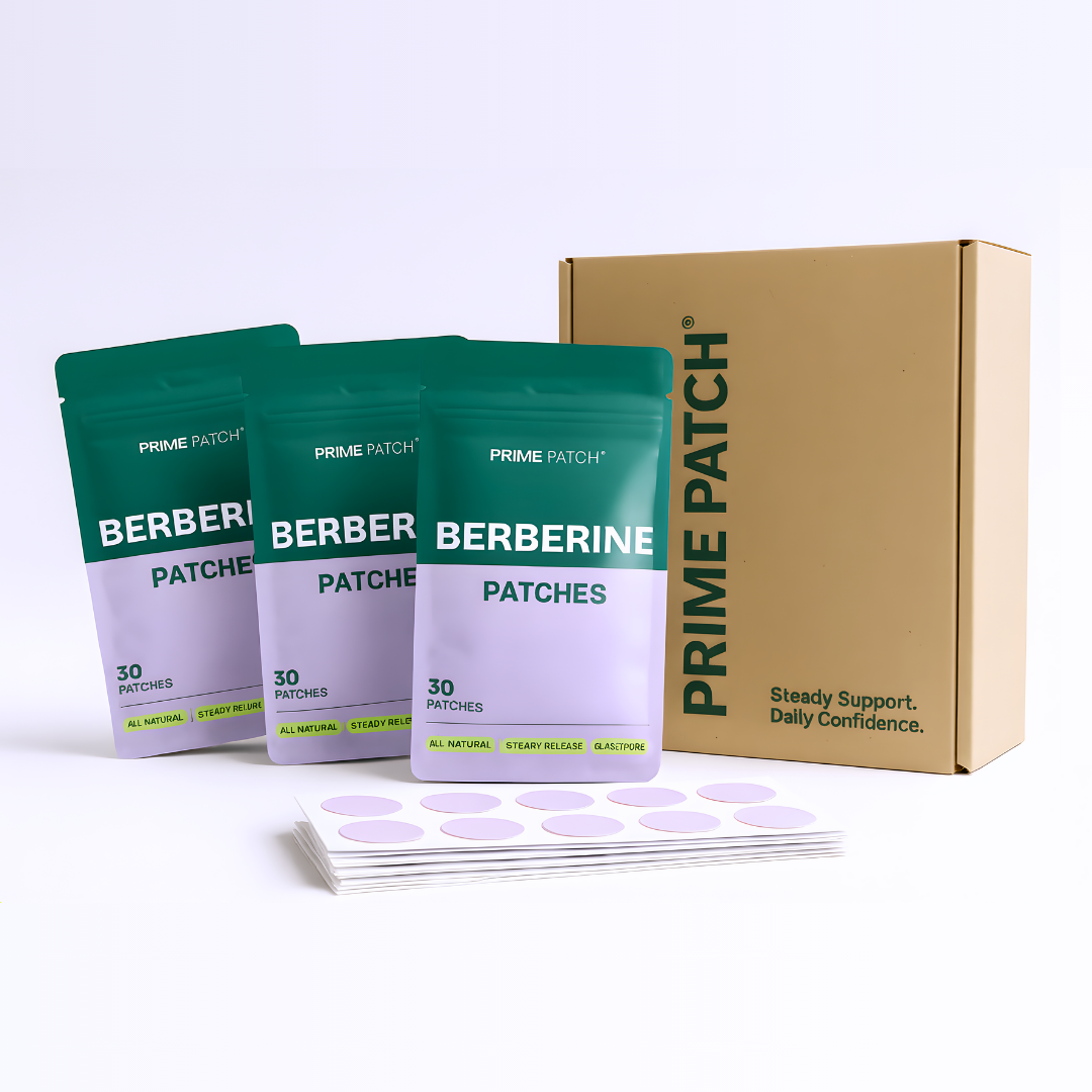 Prime Patch delivers clinically studied ingredients like Berberine and L-Glutamine through your skin using time-release technology.